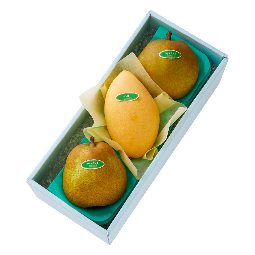 | 内容量 | ラ・フランス(山形県または青森県産)×2、タイマンゴー(タイ産)×1 |