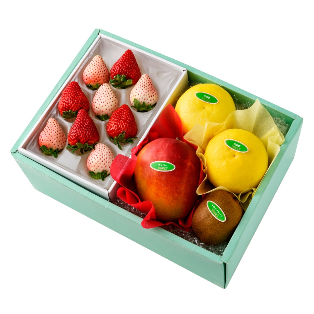 | 内容量 | 初恋の香り5粒(静岡県、和歌山県、鹿児島県または佐賀県産)、紅ほっぺ4粒(静岡県産)×各1、日向夏(宮崎県産)×2、マンゴー(ペルー、ブラジルまたはオーストラリア産)、キウイフルーツ(ニュージーランド産)×各1 |