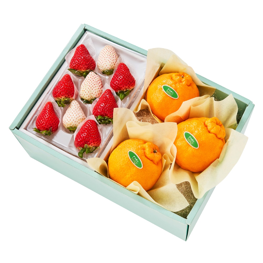 | 内容量 | さくらももいちご6粒(徳島県産)、初恋の香り3粒(静岡県、和歌山県または山口県産)×各1、デコポン(熊本県または佐賀県産)×3 |