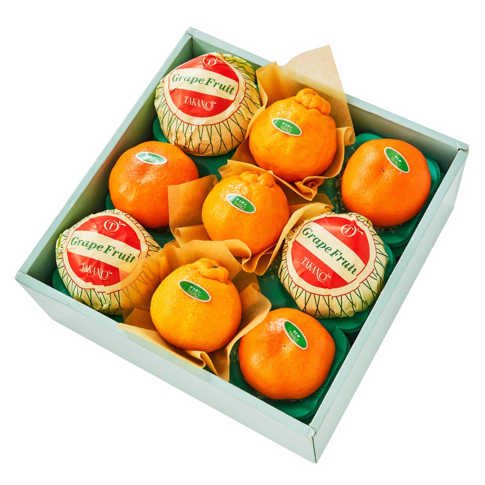 | 内容量 | デコポン(熊本県または佐賀県産)、せとか(愛媛県または佐賀県産)、グレープフルーツ(アメリカ、メキシコまたはオーストラリア産)×各3 |