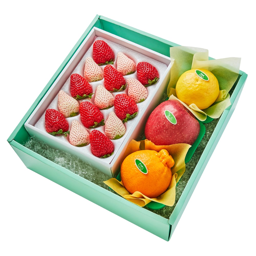 | 内容量 | まりひめいちご8粒(和歌山県産)、初恋の香り7粒(静岡県、和歌山県または山口県産)、日向夏(宮崎県産)、デコポン(佐賀県または熊本県産)、ふじ(青森県または長野県産)×各1 |