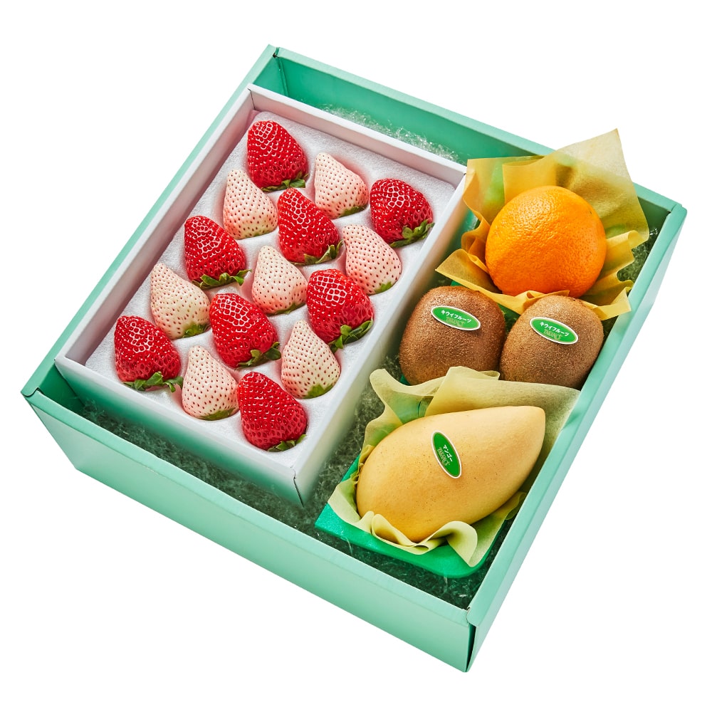 | 内容量 | まりひめいちご8粒 (和歌山県産)、初恋の香り7粒(静岡県、和歌山県または山口県産)、タイマンゴー(タイ産)、オレンジ(アメリカまたはオーストラリア産)×各1、キウイフルーツ(ニュージーランド、愛媛県または和歌山県産)×各2 |