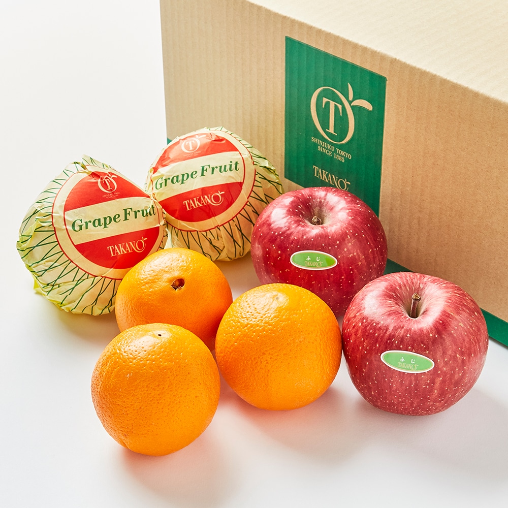| 内容量 | ふじ(青森県または長野県産)、グレープフルーツ(アメリカ、メキシコまたはオーストラリア産)×各2、オレンジ(アメリカまたはオーストラリア産)×3 |