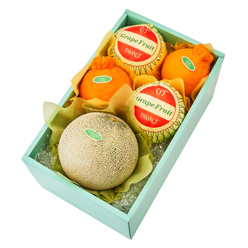 | 内容量 | アンデスメロン(熊本県または茨城県産)×1、デコポンR(佐賀県または熊本県産)、グレープフルーツ(アメリカ、イスラエル、トルコまたは南アフリカ産)×各2 |