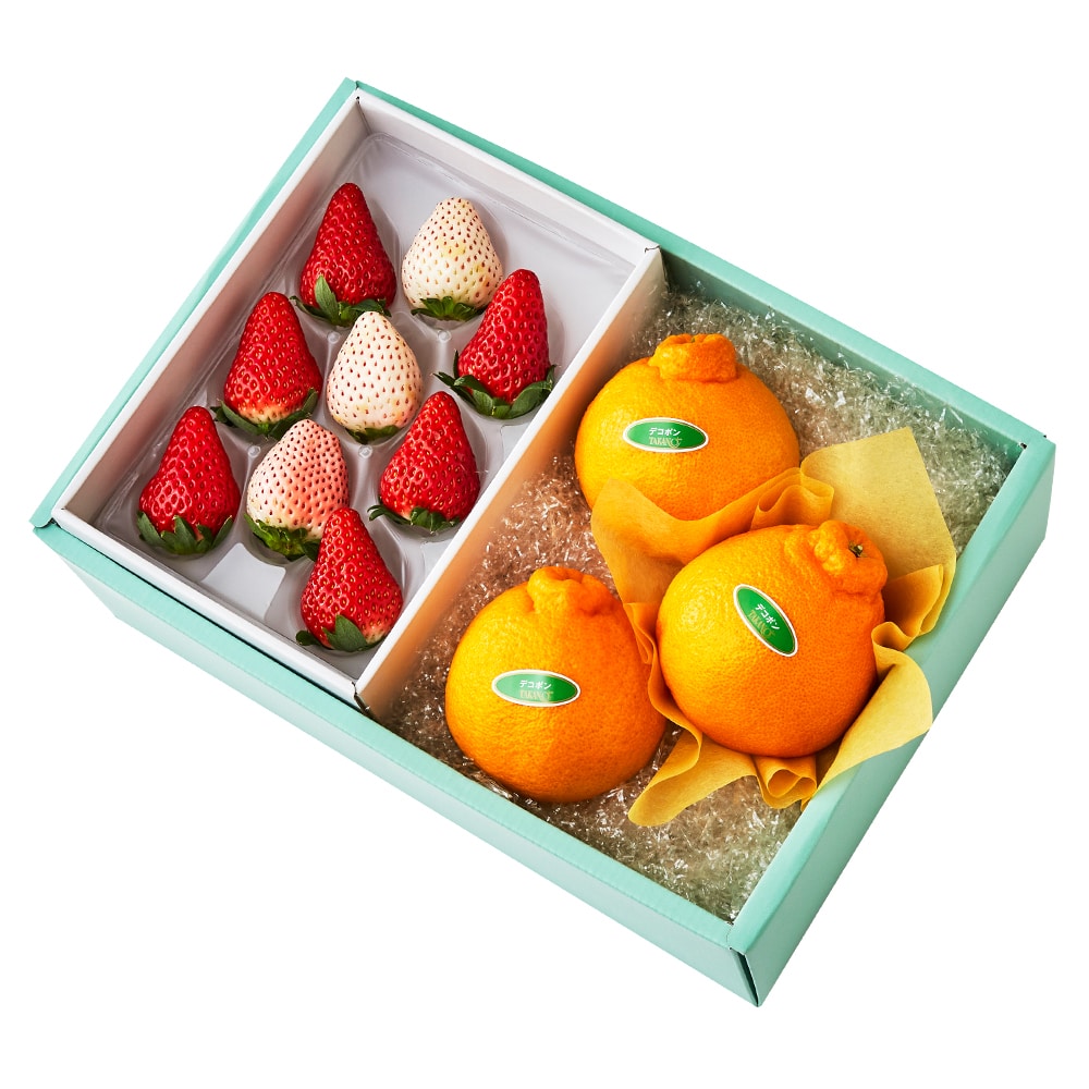 | 内容量 | 苺6粒(静岡県、佐賀県、栃木県、熊本県、千葉県、長崎県、茨城県または福岡県産)、初恋の香り3粒(静岡県、和歌山県、鹿児島県または佐賀県産)×各1、デコポン(熊本県または佐賀県産)×3 |
