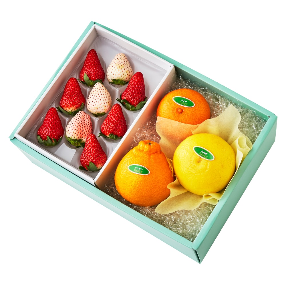 | 内容量 | 苺6粒(静岡県、佐賀県、栃木県、熊本県、千葉県、長崎県、福岡県、茨城県、徳島県または香川県産)、初恋の香り3粒(静岡県、和歌山県または山口県産)×各1、デコポン(熊本県または佐賀県産)、せとか(愛媛県または佐賀県産)、日向夏(宮崎県産)×各1 |