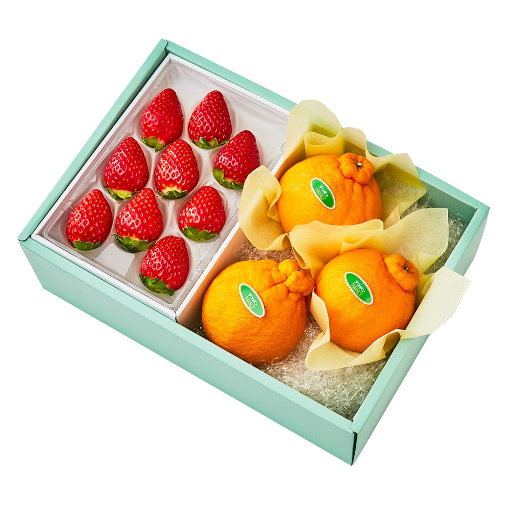 | 内容量 | まりひめいちご9粒(和歌山県産)×1、デコポン(佐賀県または熊本県産)×3 |