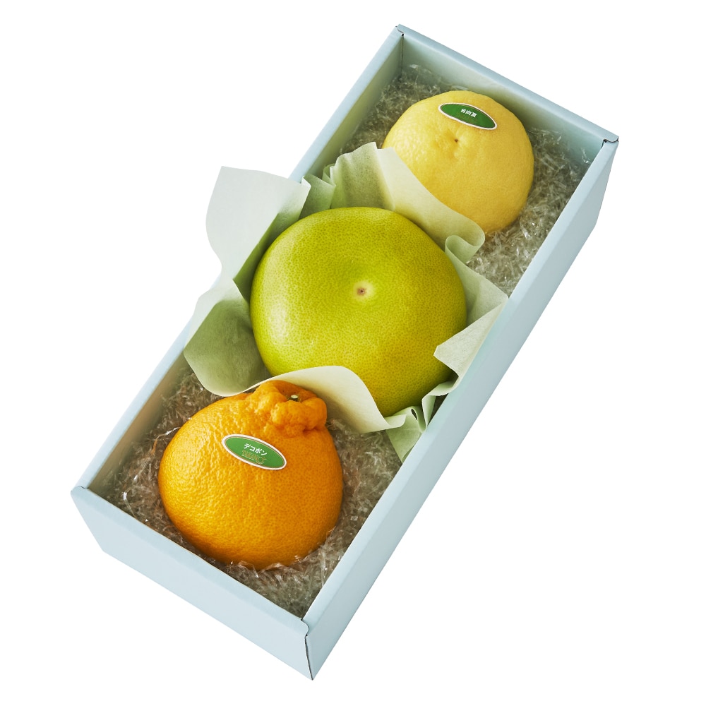 | 内容量 | メロゴールド(アメリカ産)、デコポン(熊本県または佐賀県産)、日向夏(宮崎県)×各1 |