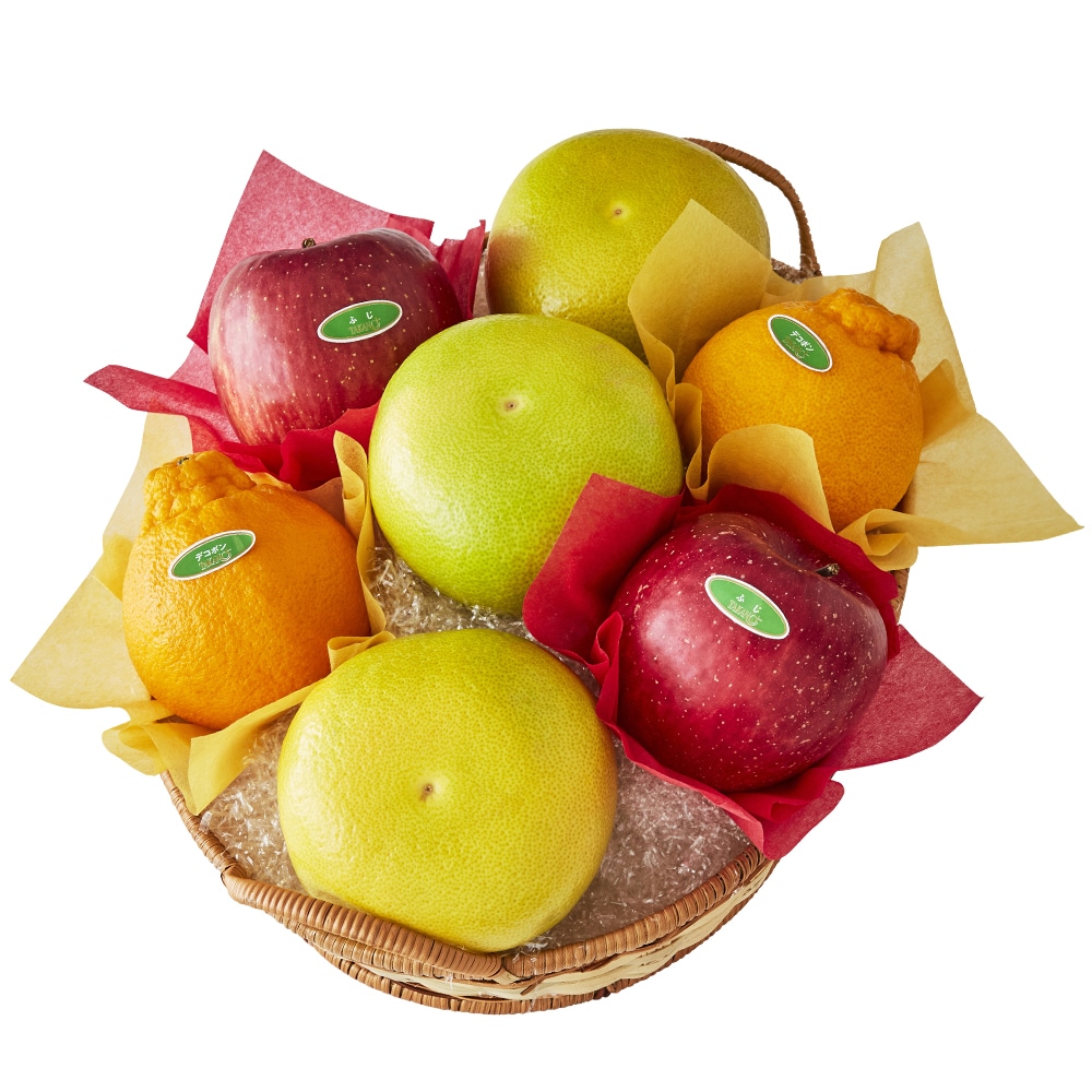 | 内容量 | メロゴールド(アメリカ産)×3、デコポン(熊本県または佐賀県産)、ふじ(青森県または長野県産)×各2(篭入) |