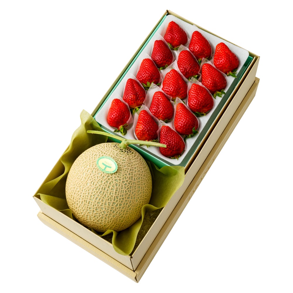 | 内容量 | マスクメロン(静岡県産)、さくらももいちご 15粒入(徳島県産)×各1 |