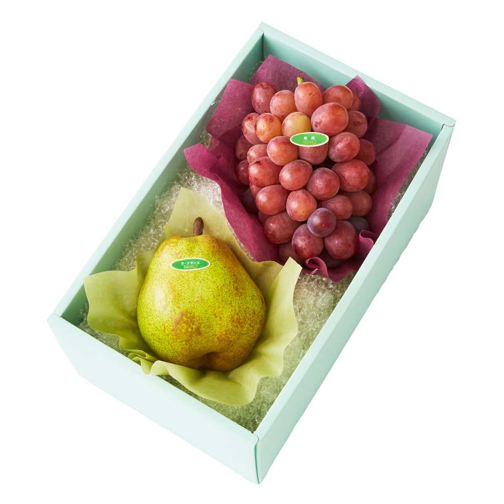 | 内容量 | 大玉ラ・フランス(山形県産)、紫苑ぶどう 約600g前後(岡山県産)×各1 |