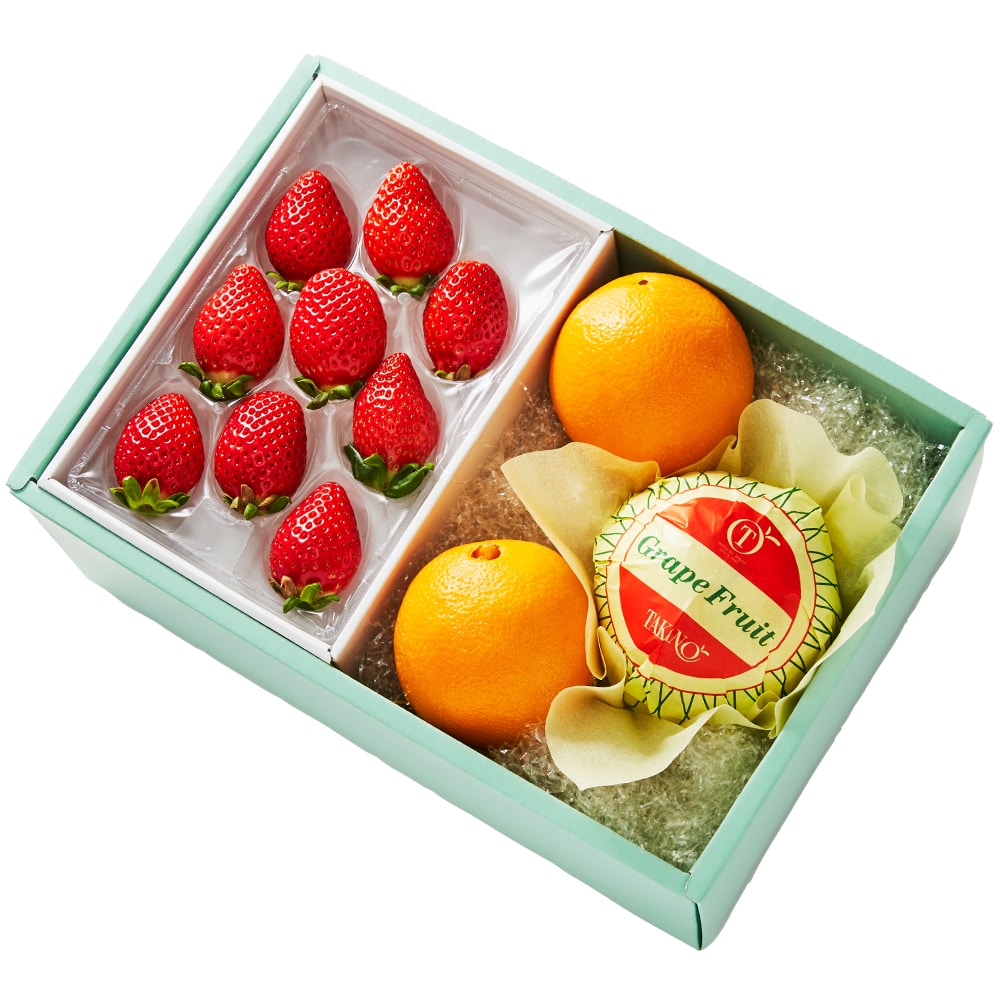 | 内容量 | べにたま苺9粒(埼玉県産)×1、オレンジ(アメリカまたはオーストラリア産)×2、グレープフルーツ(オーストラリア、アメリカ、トルコまたはメキシコ産)×1 |