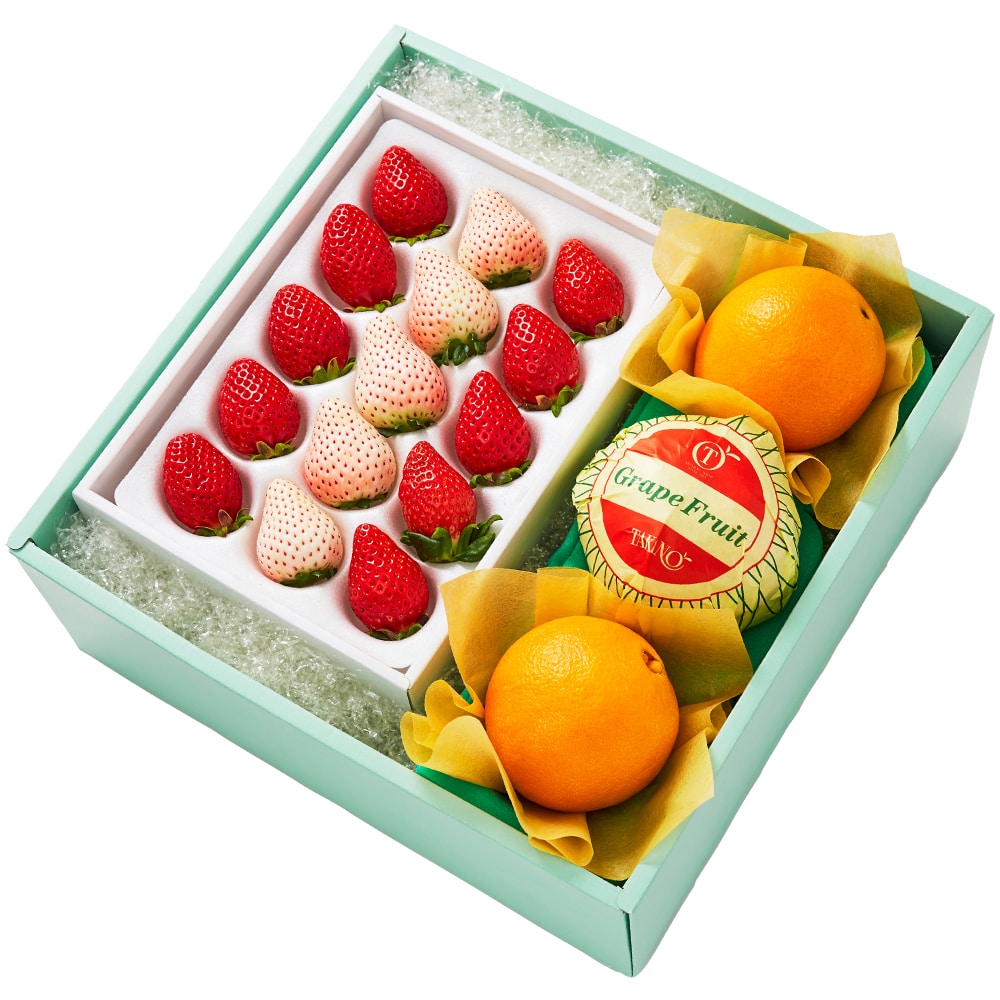 | 内容量 | べにたま苺10粒(埼玉県産)、初恋の香り5粒(静岡県産または和歌山県産)×1、オレンジ(アメリカまたはオーストラリア産)×2、グレープフルーツ(オーストラリア、アメリカ、トルコまたはメキシコ産)×1 |