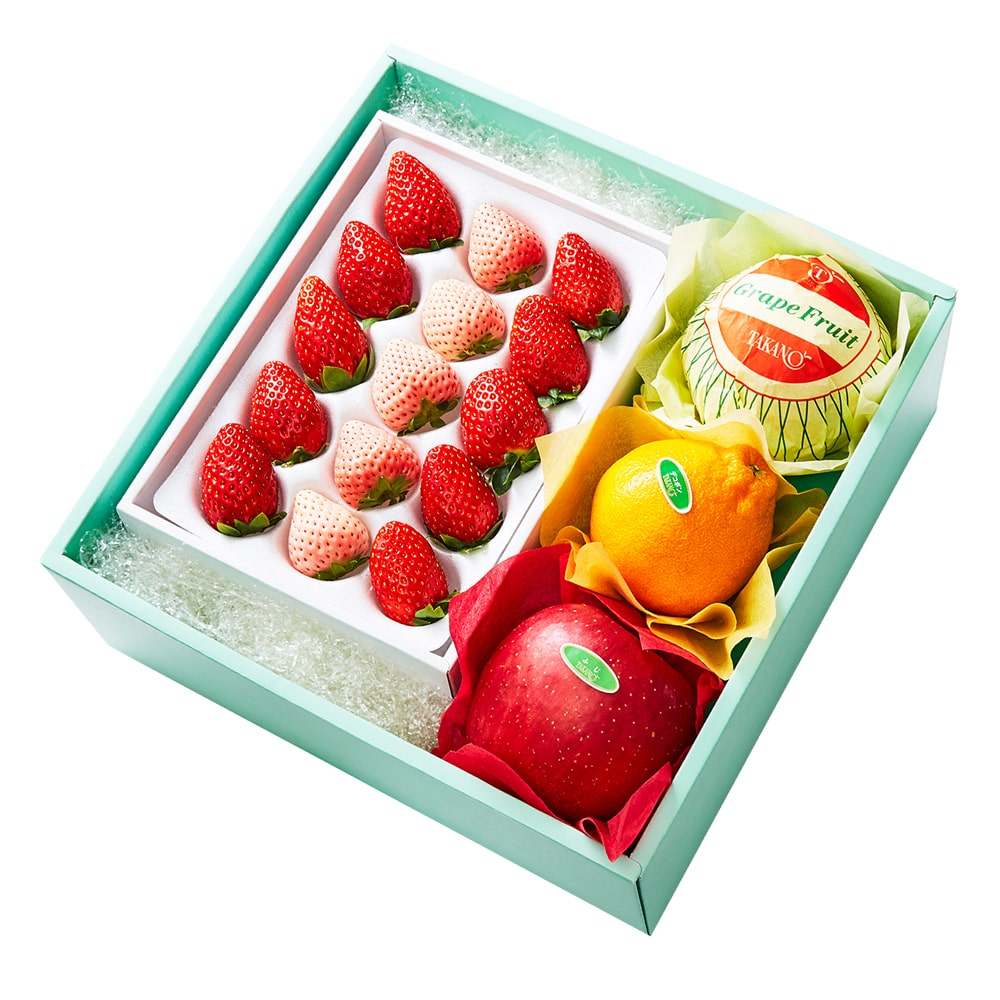 | 内容量 | コットンベリー5粒(奈良県産)、古都姫 5粒(奈良県産)、古都華5粒 (奈良県産)×1、ふじ(青森県産または長野県産)、デコポン(佐賀県、熊本県または鹿児島県産)、グレープフルーツ(オーストラリア、アメリカ、トルコまたはメキシコ産)×各1 |