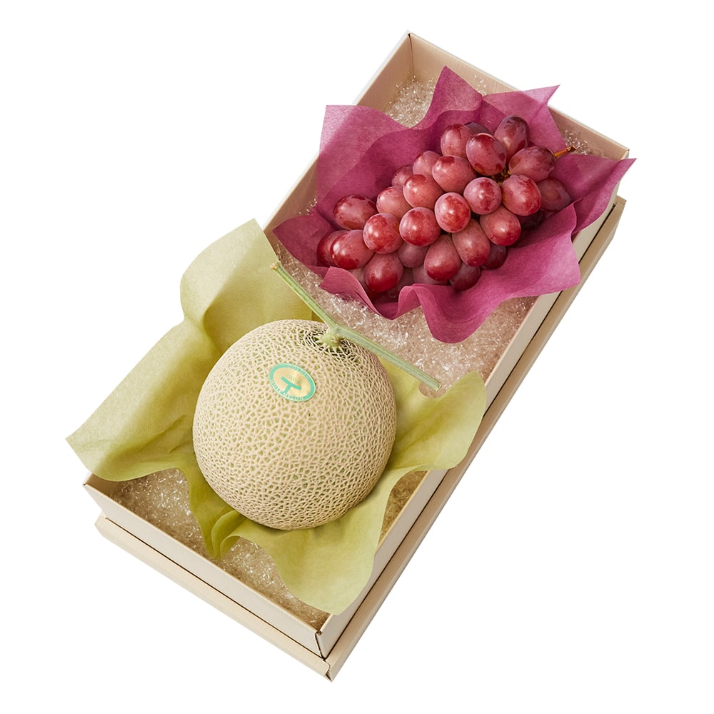 | 内容量 | マスクメロン(静岡県産)、クイーンルージュ 約500g(長野県産)×各1 |