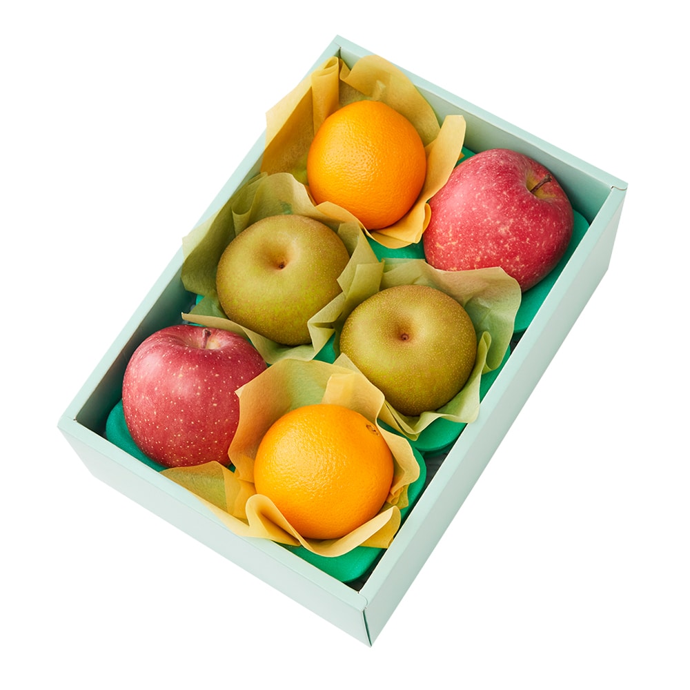 | 内容量 | りんご(長野県、青森県または山形県産)、和梨(千葉県、佐賀県、福岡県または茨城県産)、オレンジ(アメリカまたはオーストラリア産)×各2 |