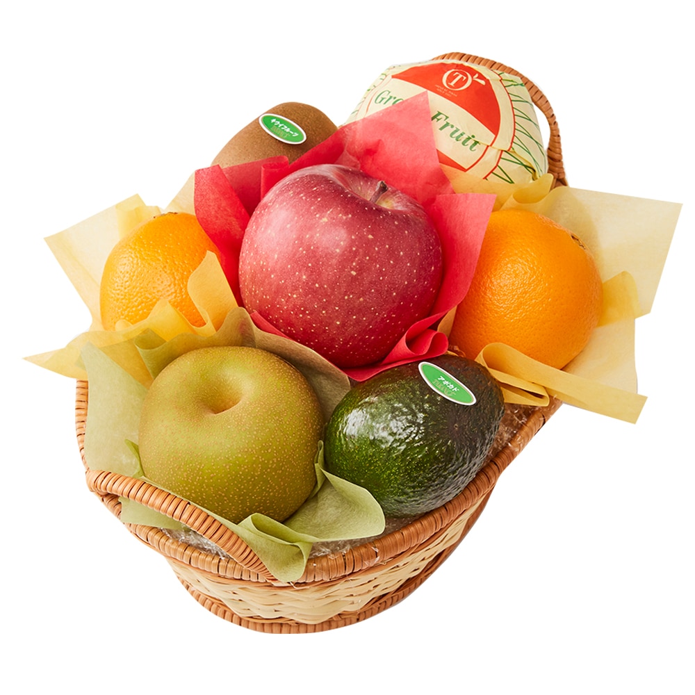 | 内容量 | りんご(長野県、青森県または山形県産)、和梨(千葉県、佐賀県、福岡県または茨城県産)、アボカド(メキシコ産)、キウイフルーツ(ニュージーランド産)、グレープフルーツ(南アフリカまたはアメリカ産)×各1、オレンジ(アメリカまたはオーストラリア産)×2 |
