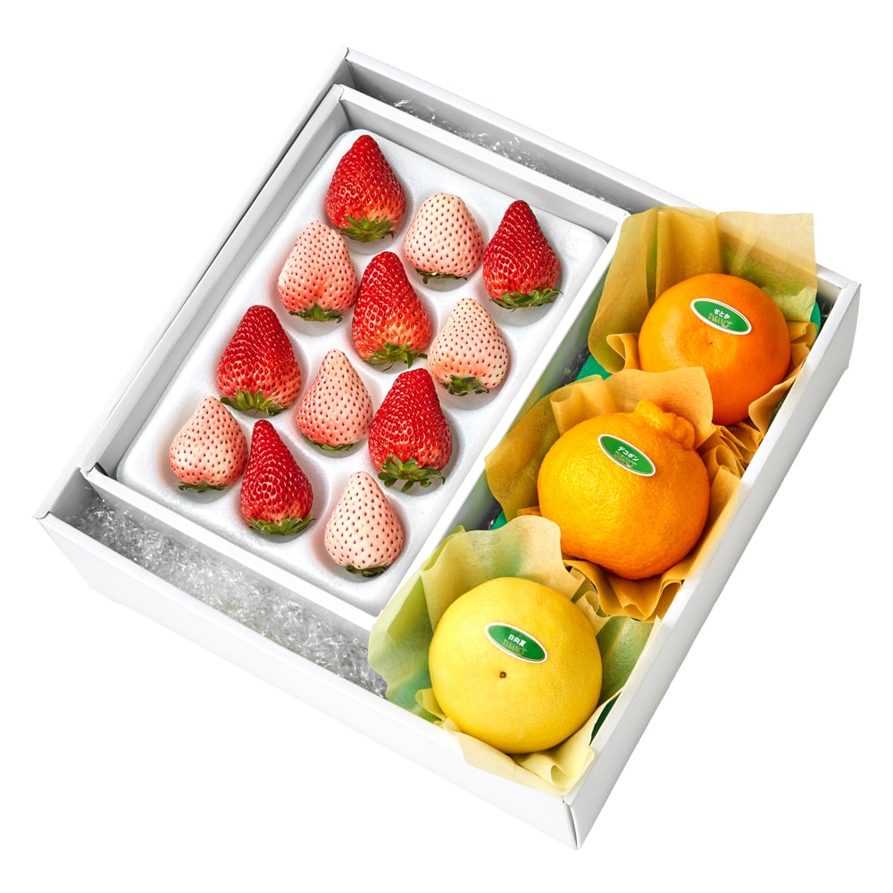 | 内容量 | 苺6粒(静岡県、佐賀県、栃木県、熊本県、千葉県、長崎県、茨城県または福岡県産)、初恋の香り6粒(静岡県、和歌山県、鹿児島県または佐賀県産)×1、デコポン(熊本県または佐賀県産)、せとか(愛媛県または佐賀県産)、日向夏(宮崎県産)×各1 |