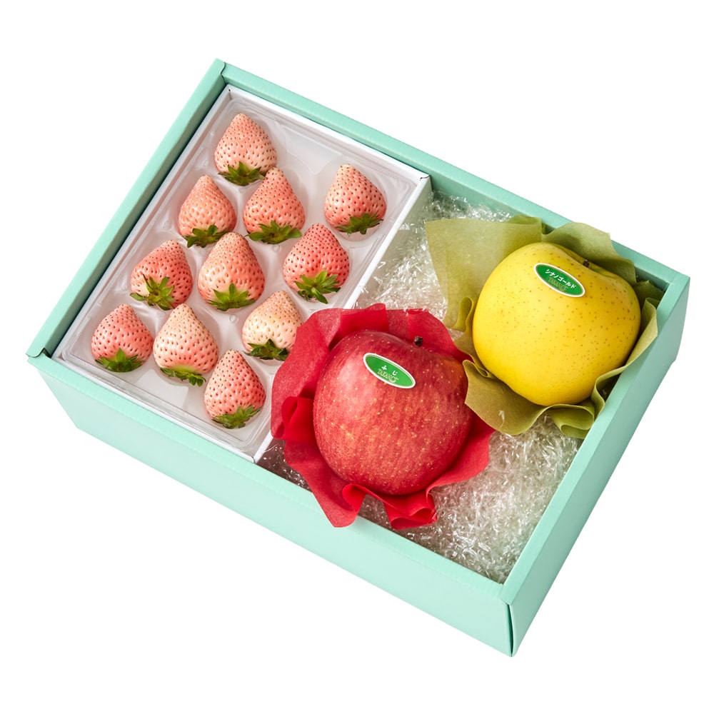 | 内容量 | コットンベリー 11粒(奈良県産)×1、ふじ(青森県または長野県産)、シナノゴールド(青森県または長野県産)×各1 |