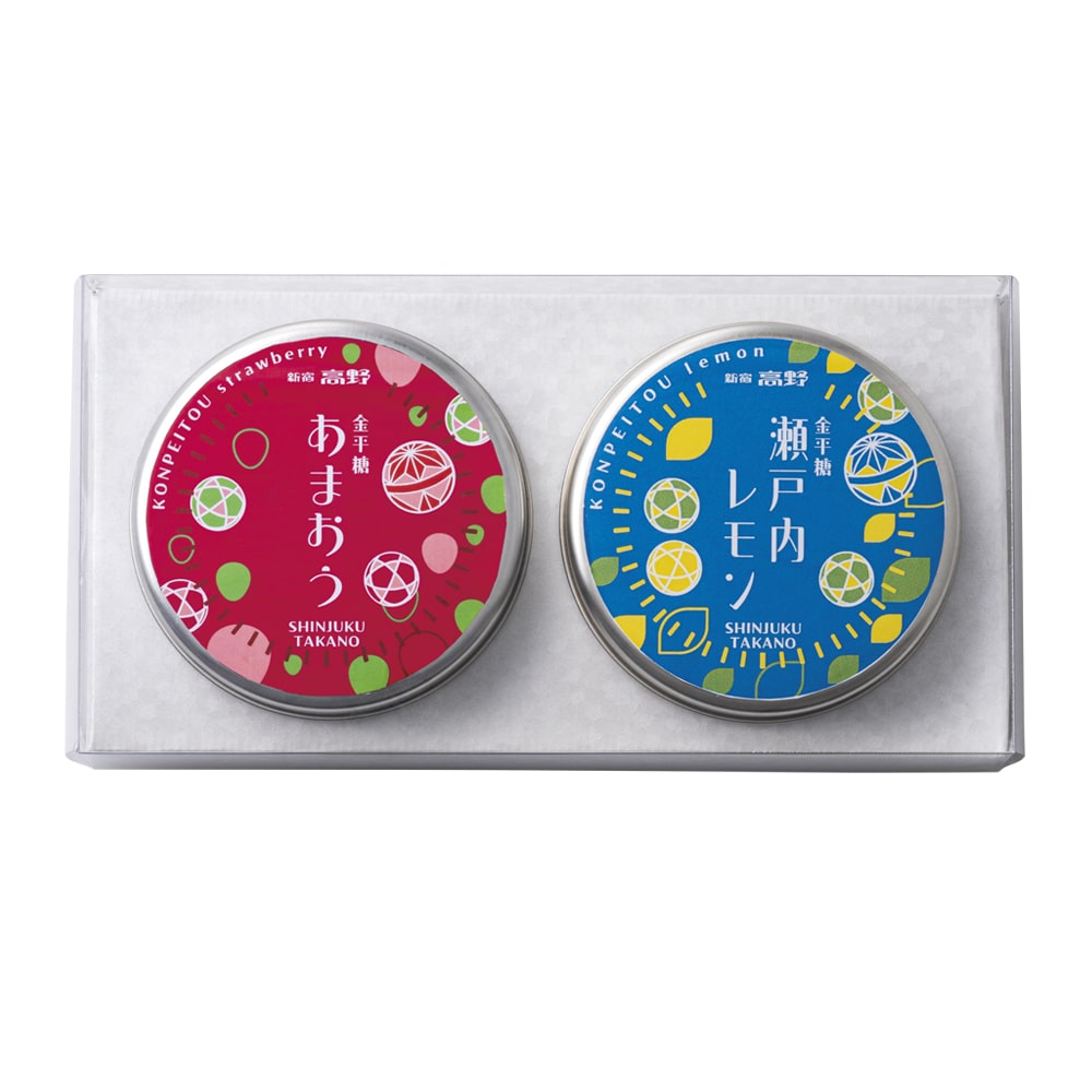 - > 新宿高野 フルーツ金平糖2入(あまおう・瀬戸内レモン)