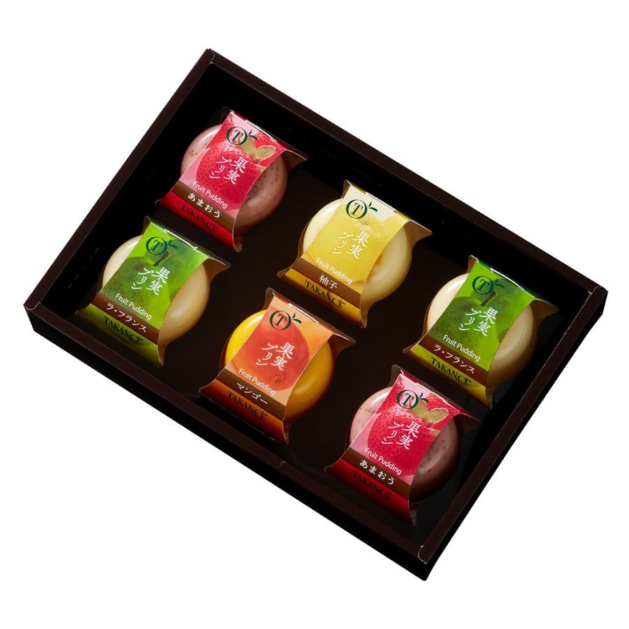 | 内容量 | 果実プリン(あまおう、ラ・フランス×各2、柚子、マンゴー×各1) |
