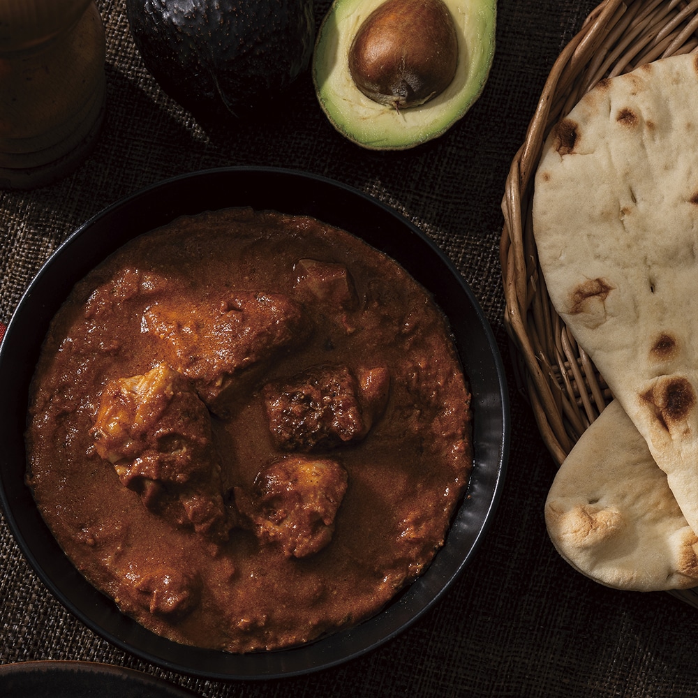 | アボカドのクリーミーな味わいをしっかりと煮込んだチキンに合わせ、トマトの程よい酸味、牛乳、ヨーグルト、バターのまろやかな風味が味わえる、程よいスパイスを効かせたカレーに仕上げました。 |