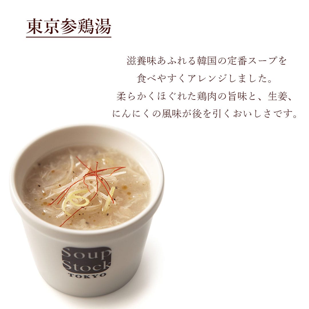 ●商品内容/オマール海老のビスク・東京ボルシチ・焼き鯛だしの和風スープ・とうもろこしとさつま芋のスープ・東京参鶏湯 各180g
