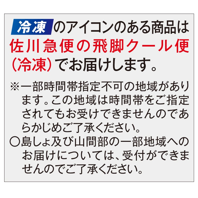 ●冷凍品については佐川急便の飛脚クール便(冷凍)でお届けします。