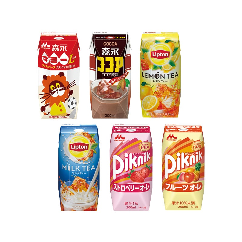 ●商品内容/森永マミーL・森永ココア・リプトンレモンティー・リプトンミルクティー・ピクニックストロベリーオレ・ピクニックフルーツオレ 各200ml×4