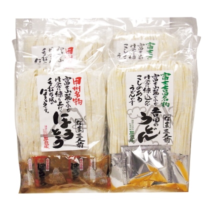 ●商品内容/ほうとう(生めん450g、味噌35g×3)×2、吉田のうどん(生めん450g、つゆ25g×3)×2