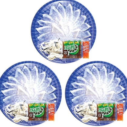 ●商品内容/[とらふく刺身20g・とらふく皮湯引き10g(19cmプラスチック皿)、ぽん酢・もみじおろし付]×3