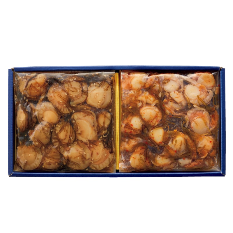 ●商品内容/漬けほたて・ほたて赤柚子胡椒 各150g