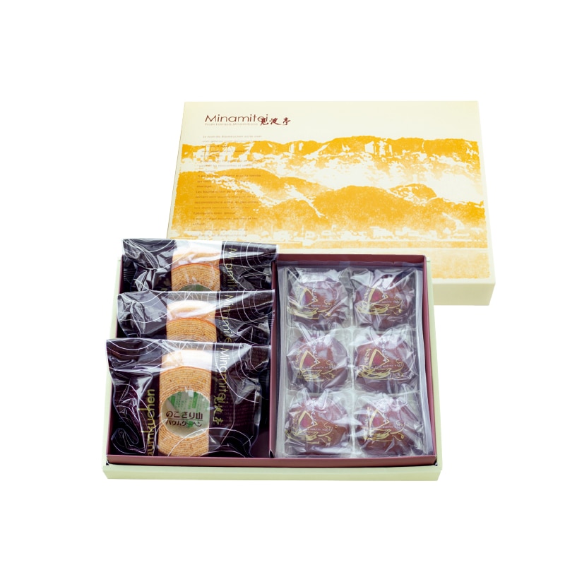 ●商品内容/のこぎり山バウムクーヘン(1山)3個、黒糖まんじゅう6個