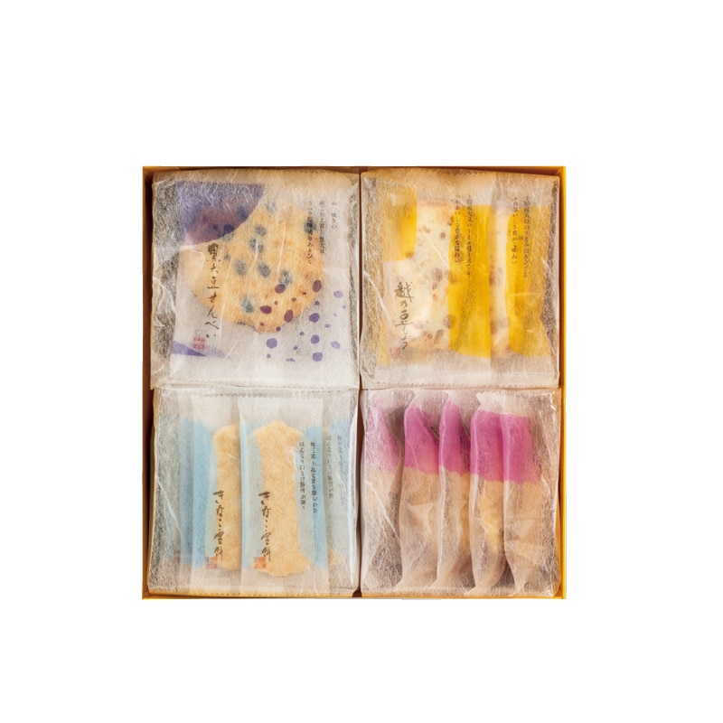 ●商品内容/きなこ雪餅22枚、越乃豆もち・黒大豆せんべい 各7枚、揚もち5枚