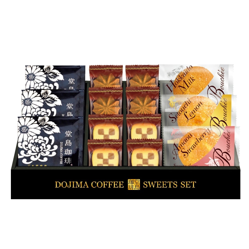 ●商品内容/堂島珈琲ドリップコーヒー8g×3、ブッセ(あまおう苺・瀬戸内レモン・ミルク 各1個)、クッキー(チェス・コーヒー 各4個)