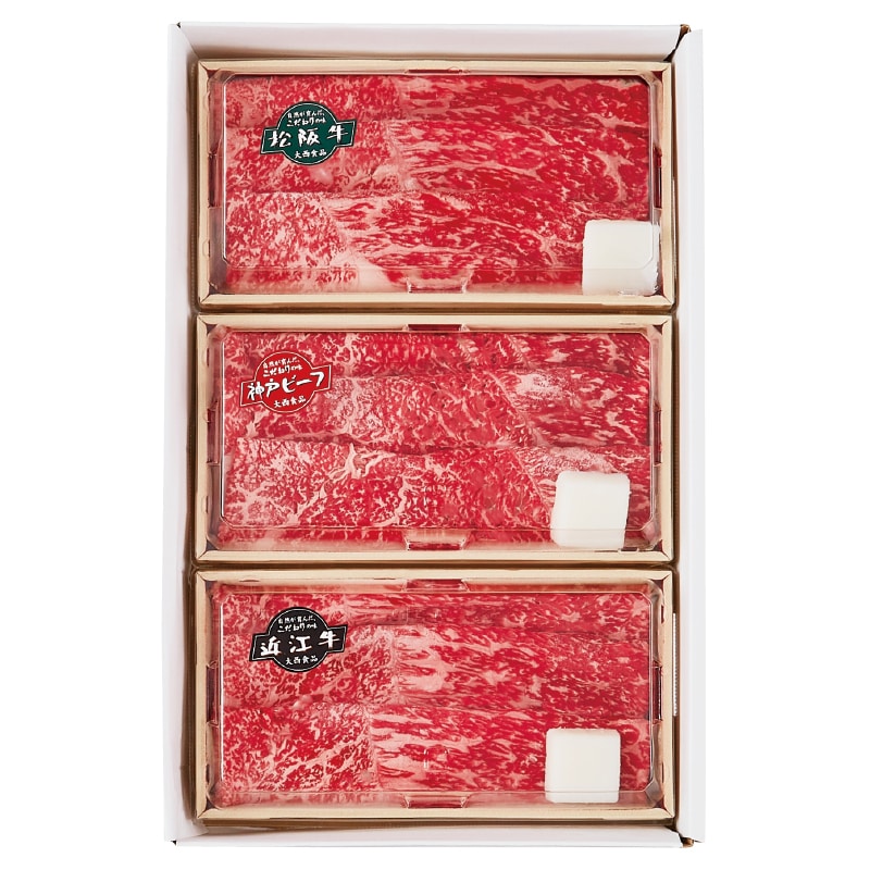 ●商品内容/松阪牛・神戸ビーフ・近江牛 各100g、牛脂付