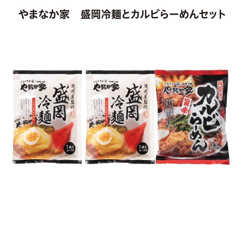 ●商品内容/盛岡冷麺(めん110g、スープ30g)×2、カルビらーめん(めん70g、スープ52g)
