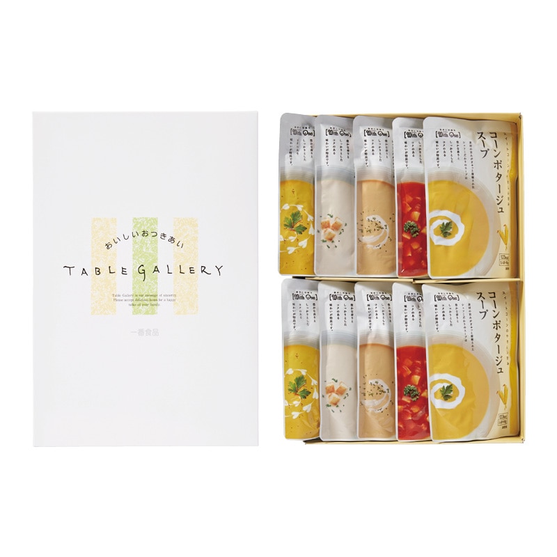 ●商品内容/(1)かぼちゃスープ150g×2、(2)じゃがいものクリーミースープ・(3)ごぼうスープ・(4)コーンポタージュスープ・(5)ミネストローネスープ 各160g×2、