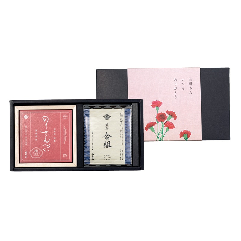 ●商品内容/のりせんべいうめ10枚、玉露山本山・合組煎茶天下一・合組煎茶山本山・煎茶宇治・ほうじ茶・煎茶掛川・煎茶狭山・煎茶八女・煎茶知覧・抹茶入り玄米茶 各3g