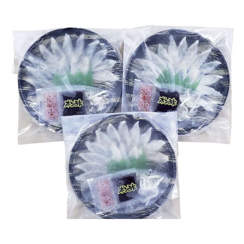 ●商品内容/(とらふぐ刺身20g・とらふぐ皮刺10g・ぽん酢12g・もみじおろし3g)×3