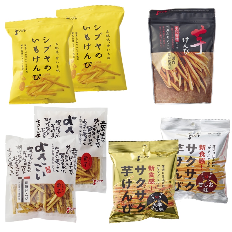 ●商品内容/いもけんぴ105g×2、本和香糖芋けんぴ110g、よさこい(芋けんぴ155g、胡麻けんぴ150g)、サクサク芋けんぴ(大学イモ味・甘しお味 各55g)