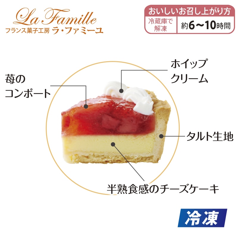 香川県綾上高原農場のコクのあるこだわり卵を使った、濃厚でしっとりした半熟食感のチーズケーキに、苺の粒感を残したほんのり甘酸っぱいコンポートを敷き詰めました。【商品提供者コメント】