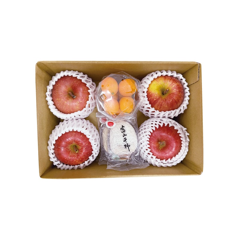 ●商品内容/サンふじ1kg(4個)、金柑100g(5~8個)、干し柿120g(2~4個)