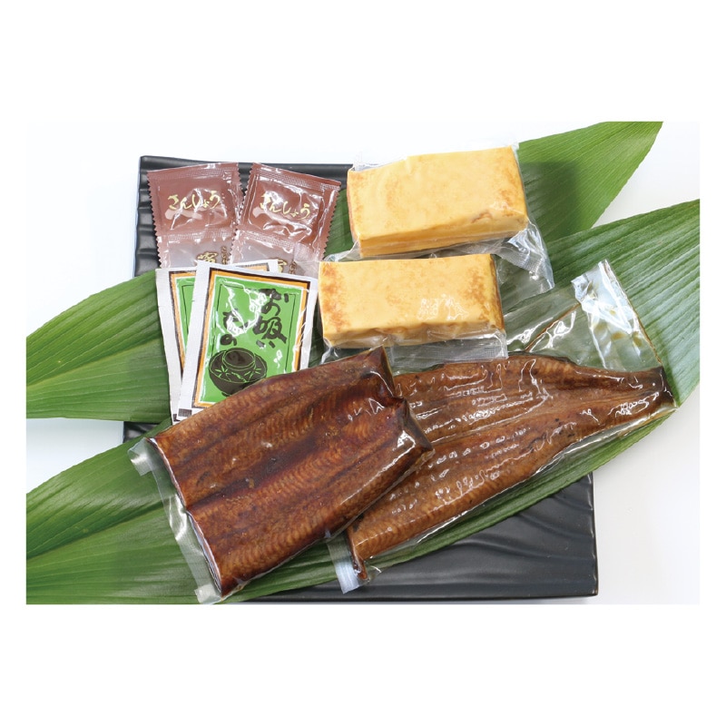 ●商品内容/うなぎ蒲焼110g・玉子焼120g・さんしょう付蒲焼のたれ・粉末お吸い物 各2袋