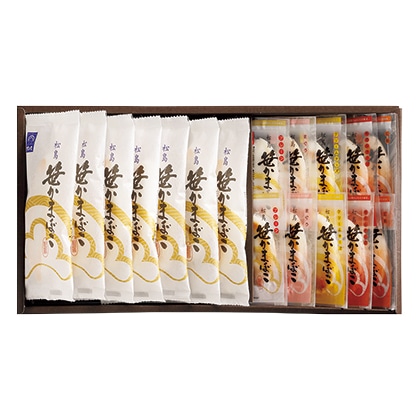 ●商品内容/笹かまぼこ45g×7、真空笹かまぼこ(プレーン・クリームチーズ・紅鮭・まぐろ 各20g×2、牛たんチーズ22g×2)