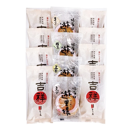 ●商品内容/笹蒲鉾「吉祥」35g×8、遊里揚(五目・枝豆・玉ねぎ・えび紅しょうが 各1枚)