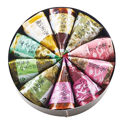 ●商品内容/味すぐき・嵯峨ふぶき・里の味・さくら漬・黒ごま沢庵・嵯峨嵐山漬・古都ほたる・嵯峨しば漬・おむすびみぶ菜・うり茶漬 各40g