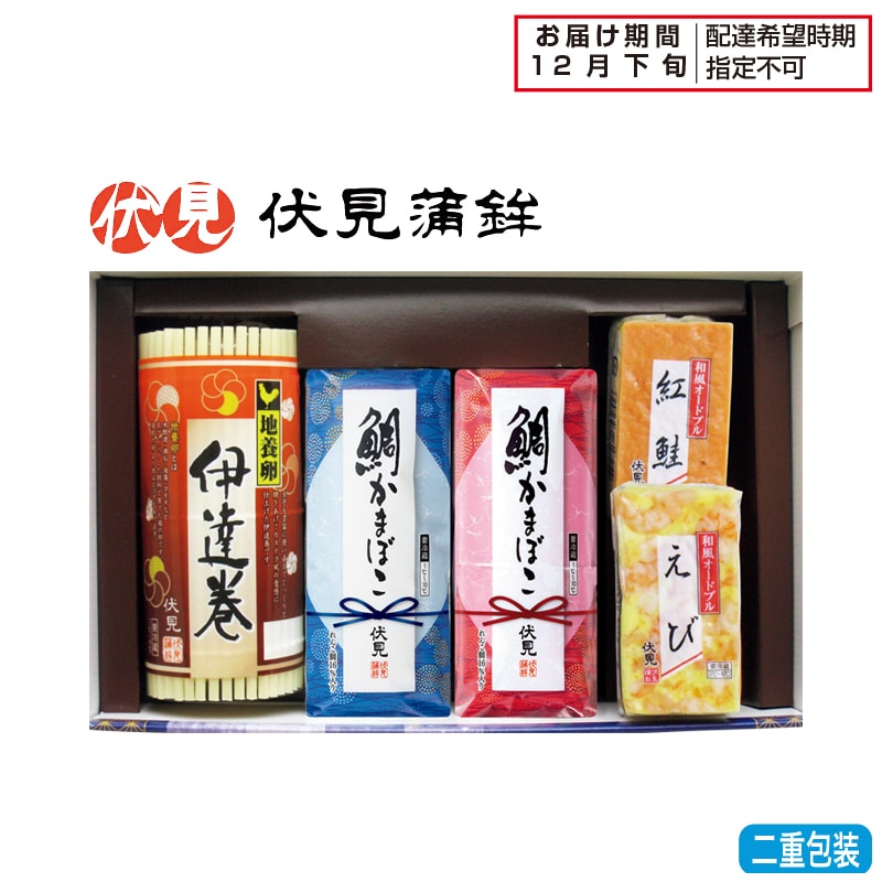 ●商品内容/鯛かまぼこ(赤・白 各250g)、地養卵伊達巻1本、和風オードブル(えび・紅鮭 各1個)