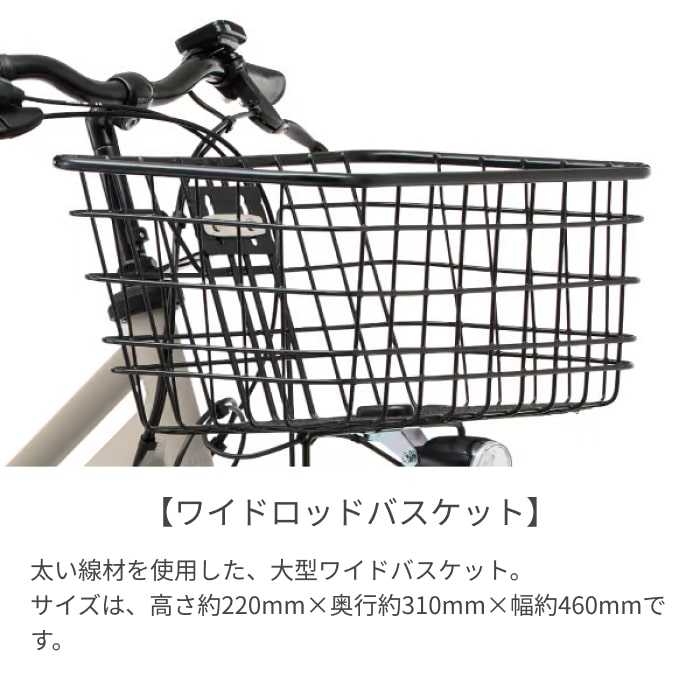 「好きなことに打ち込む時間(TIME)をさらに(MORE)生み出し、学生生活を精一杯楽しんでほしい。」そんな想いから通学用電動アシスト自転車TIMO(ティモ)が誕生しました。TIMOシリーズには、安全に快適に通学できる特徴がいっぱい!まずは、小型で大容量のバッテリーです。電池満タンの約80%まで急速充電し、その後は過充電にならないよう少しずつ充電する技術を採用。必要な電力をスピーディに充電しつつ、電池の劣化を防ぎます。次に、横長のスクールバックもラクラク収納できる、横幅なんと46cmの大容量バスケットです。太い線材を使用しているので見た目はすっきりスポーティな印象に。さらに嬉しいのが、盗難の不安を軽減する1キー3ロック。1つのキーで後輪サークル錠、バッテリーロック、ワイヤー錠の3つのロックが開錠可能なので、キーを管理する煩わしさと盗難の不安を軽減します。その他にも、簡単にサドルが抜き取られない構造のサドルガードマンや、狭い駐輪場でも楽に施錠・開錠が可能なキャリア取付型サークル錠、暗い夜道を照らしてくれるLEDオートライトなど、通学に嬉しい機能を詰め込んだ一台です。