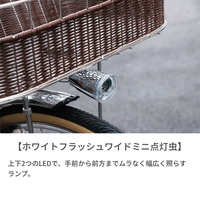 かわいい見た目が女性に人気の、カジュナのデラックスモデル(チェーンタイプ)です。機能だけの自転車はつまらないけど、デザインだけで実用性がなければ意味はない。そんな悩みはカジュナが解決してくれます!クラシカルで上品な見た目とは裏腹に、機能面も充実しています。何でも入る大きなバスケットに安心のオートライト、内装式ギアなど高スペックです。毎日の通勤通学にも使えるし、もちろん休日のお出かけでも活躍してくれる。横幅なんと44cmの大型バスケットにワイドミニオートライト、各パーツはサビに強い素材でワンランク上のデラックスモデルです。上品な見た目なので女子中高生から大人の女性まで、世代問わずお乗りいただけます。内装変速や錆びにくいアルミハンドルを搭載した長く使える一台です。※当サイトではチェーンタイプのみ取り扱っております。